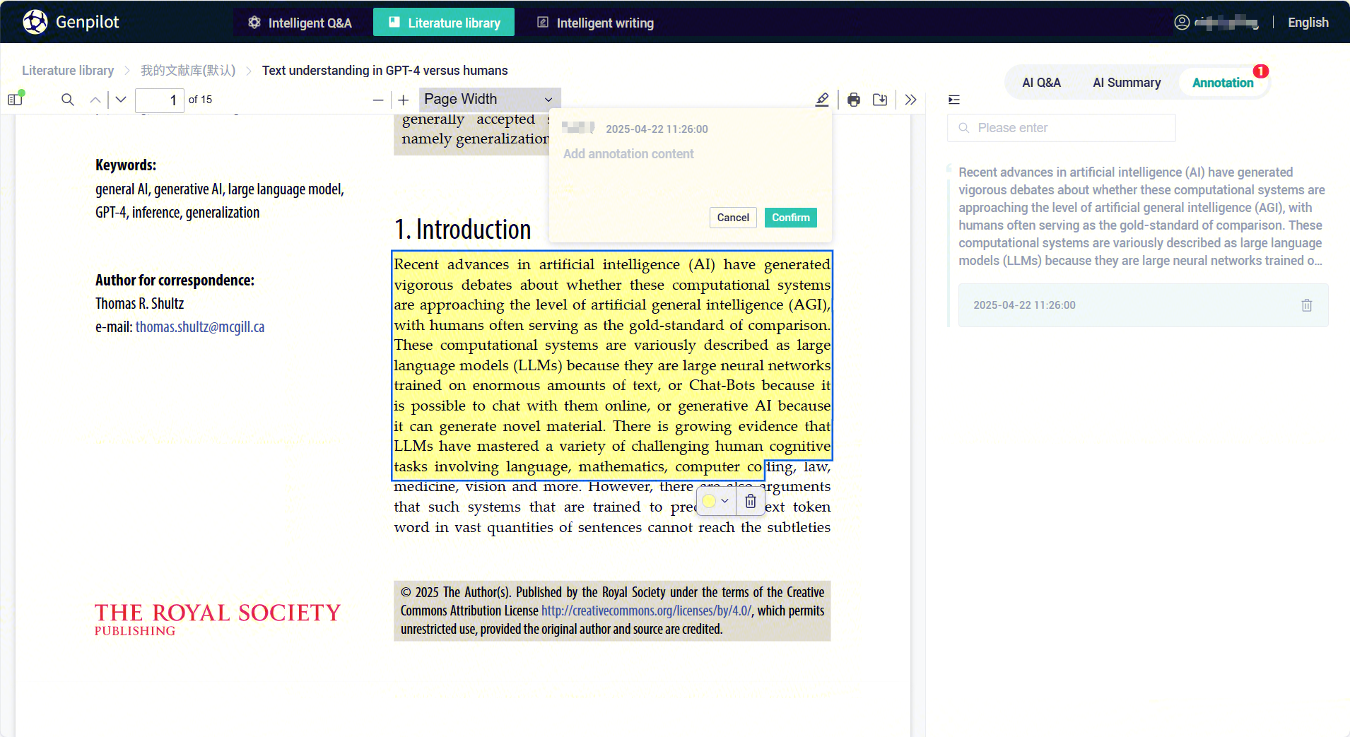 Annotation: Freely mark and annotate key information, facilitating repeated reading of the literature and ensuring important details are not forgotten.