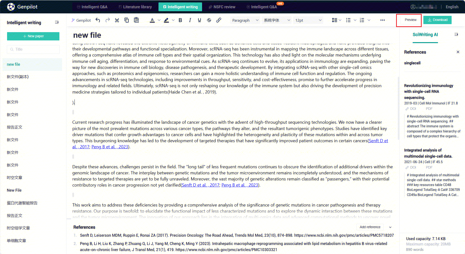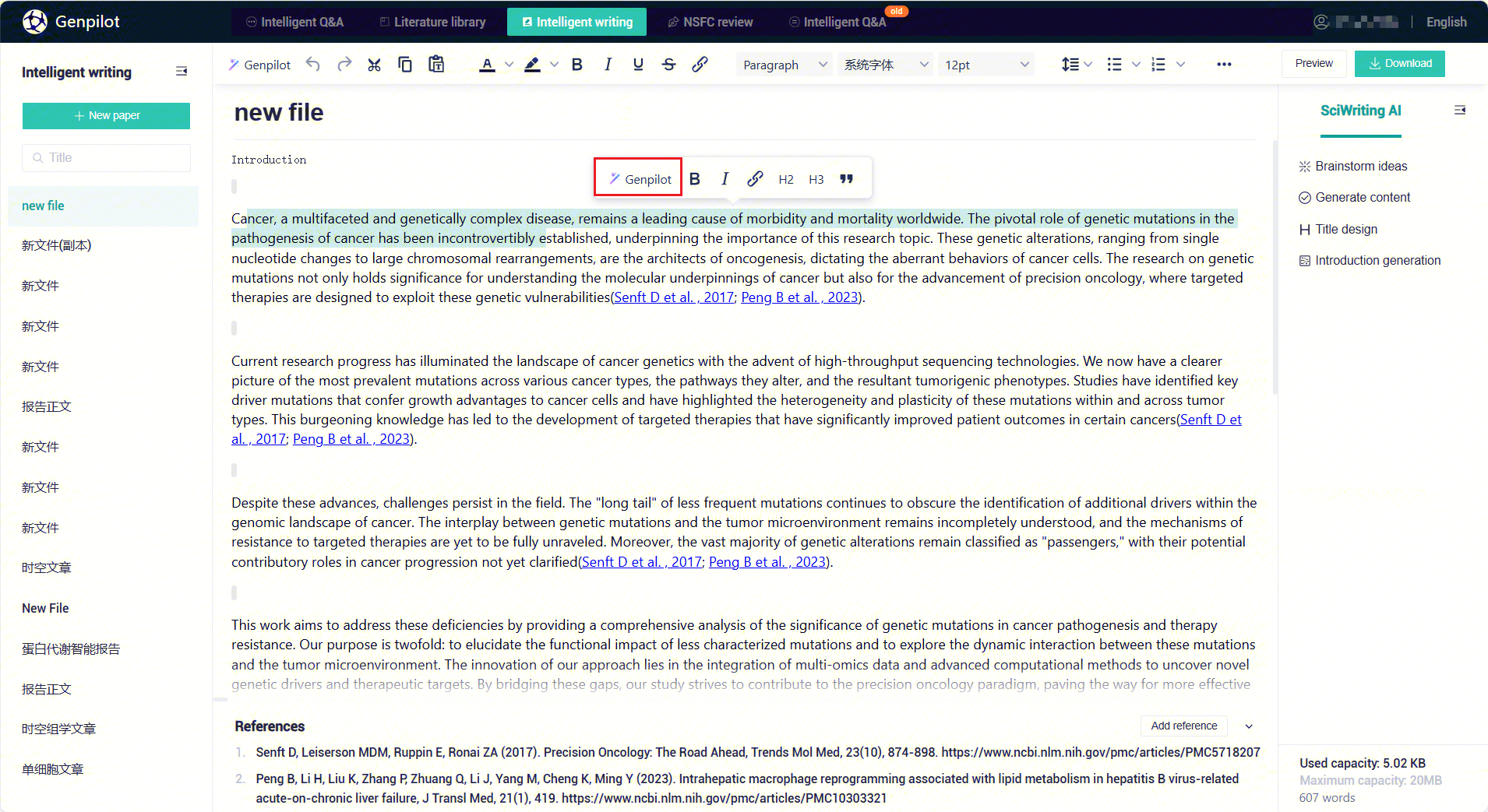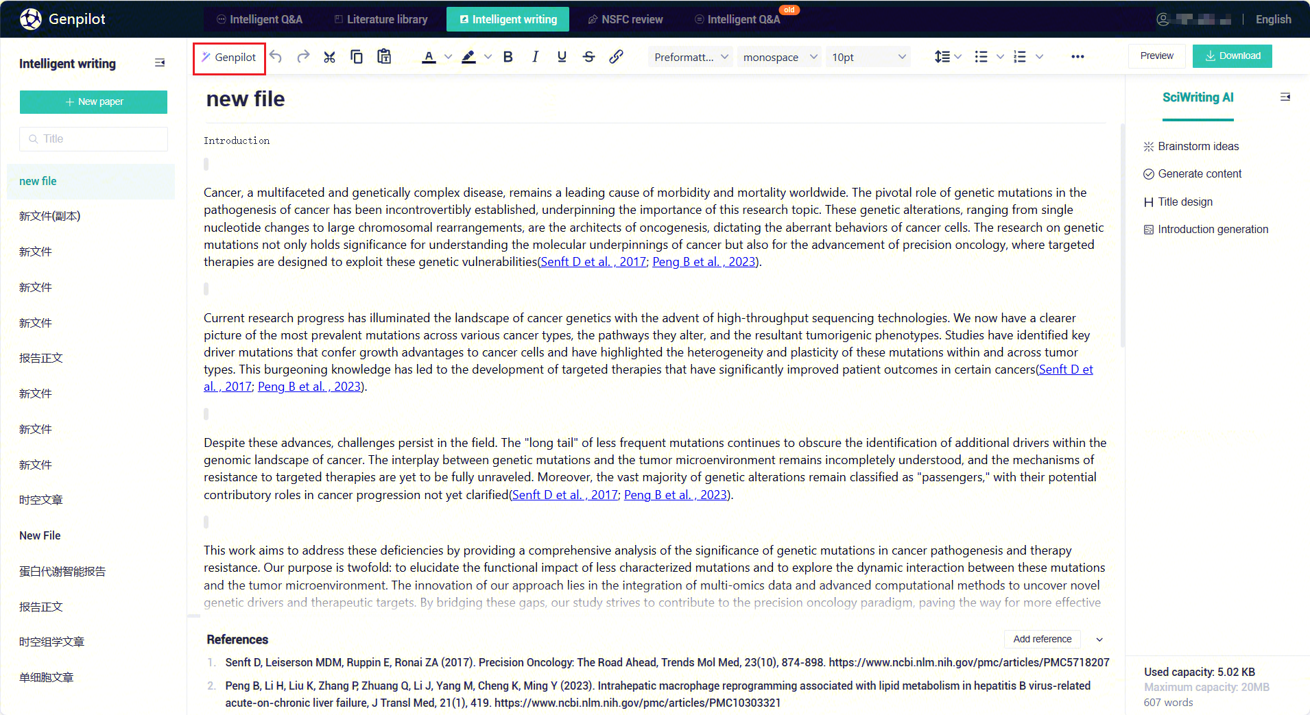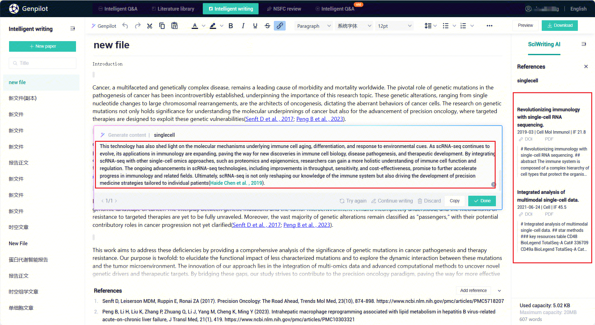 - Introduction generation: Generate the introductory part of the article, complete with references and citation information. The operation is similar to "Generate content".