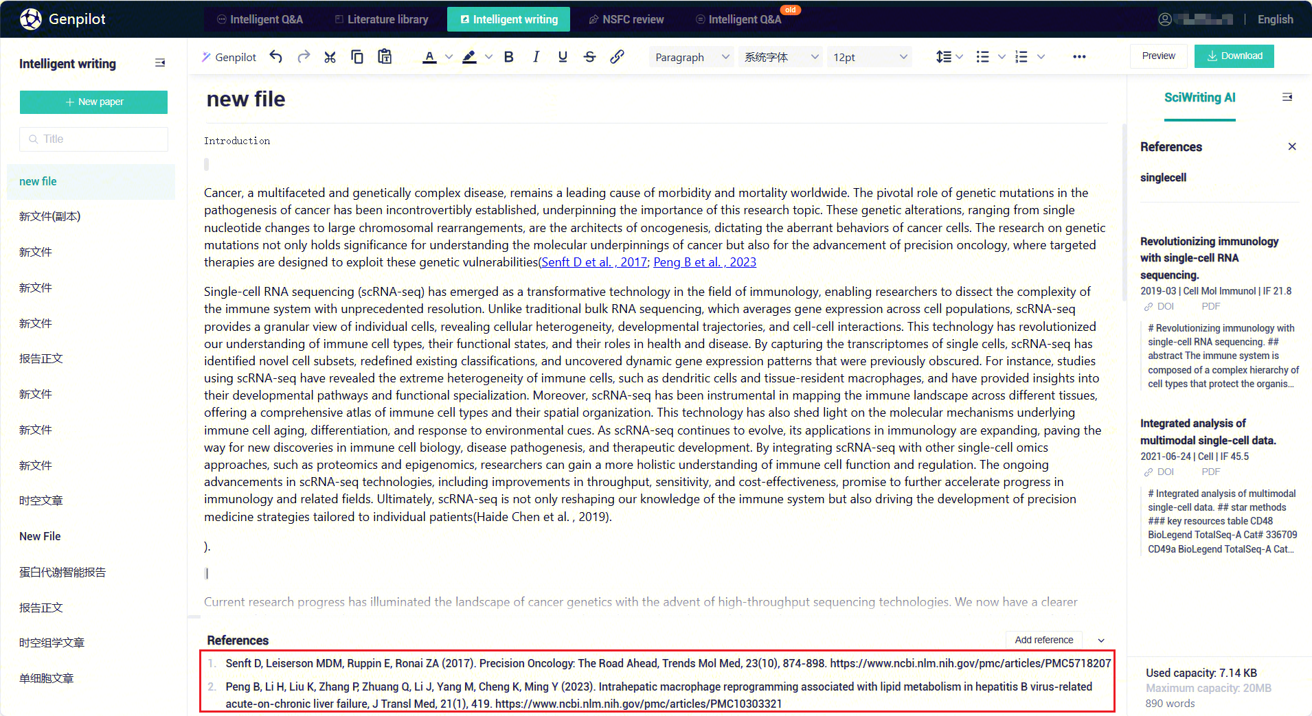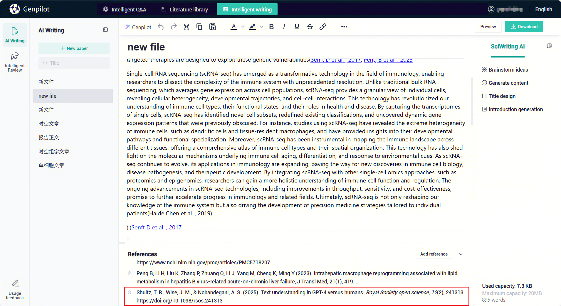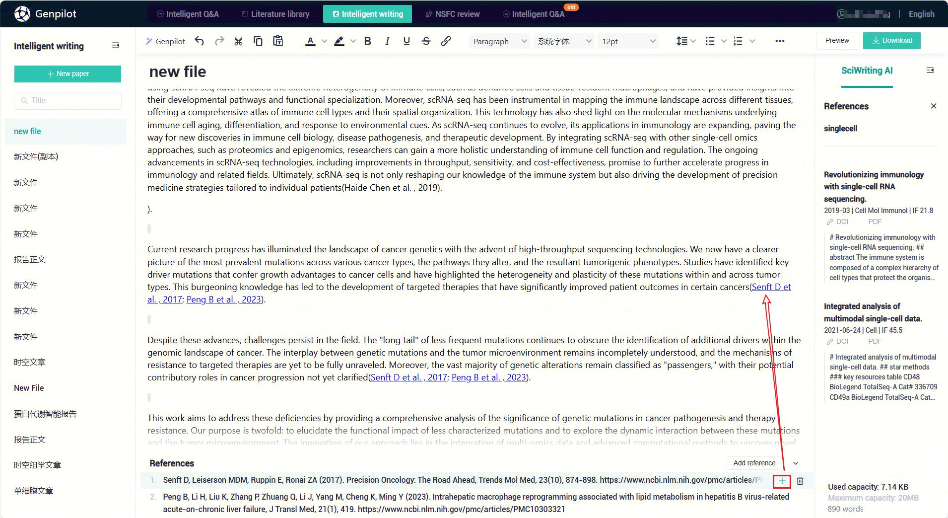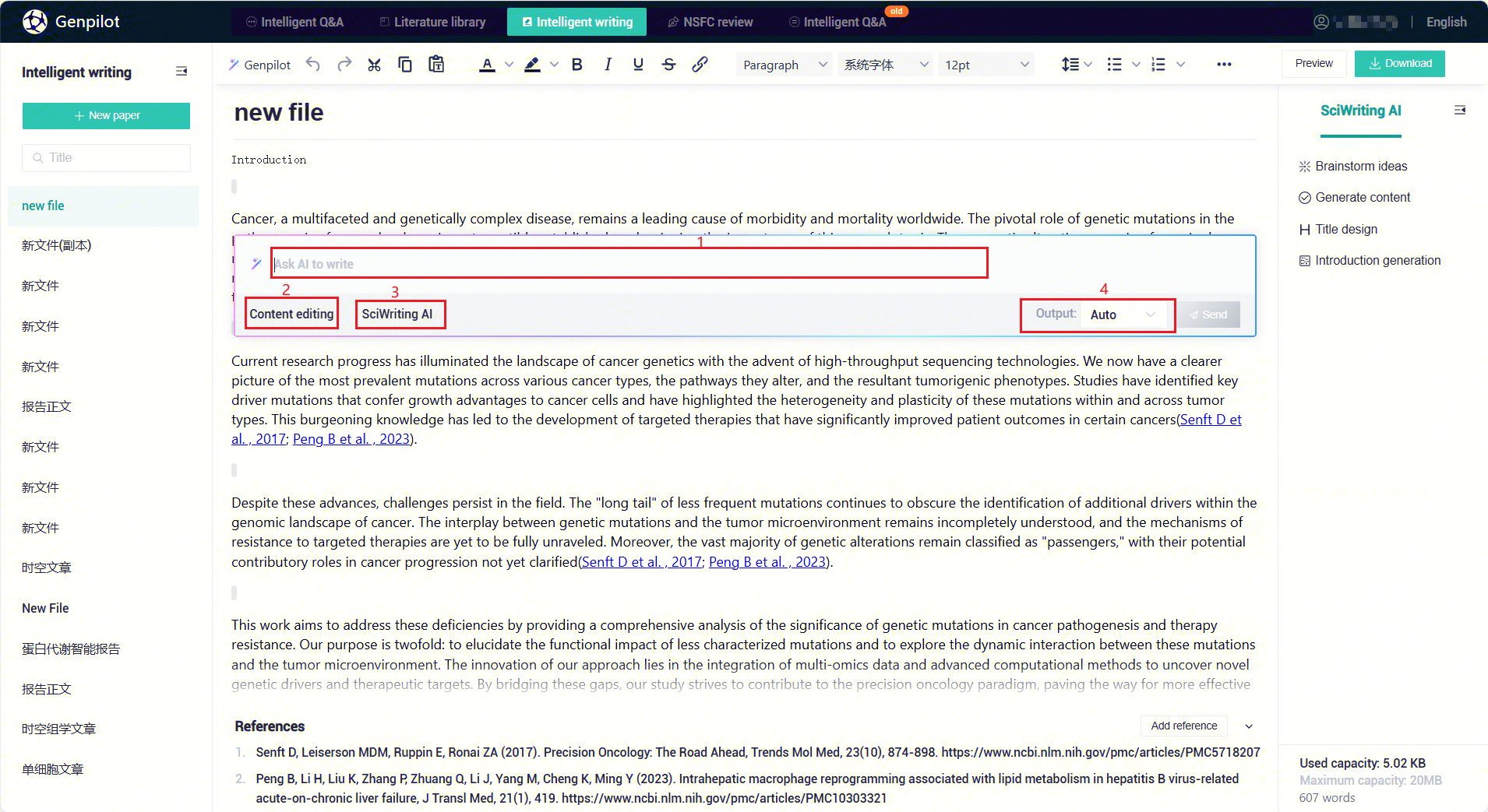 After the "Generate content" and "Introduction generation" content is inserted into the article, the references are automatically updated: