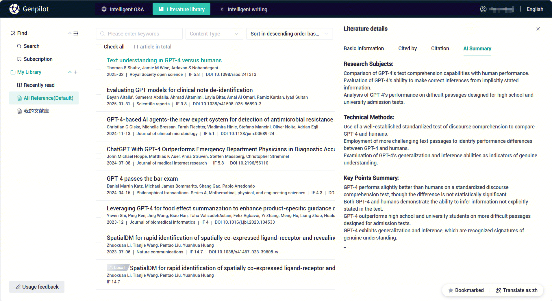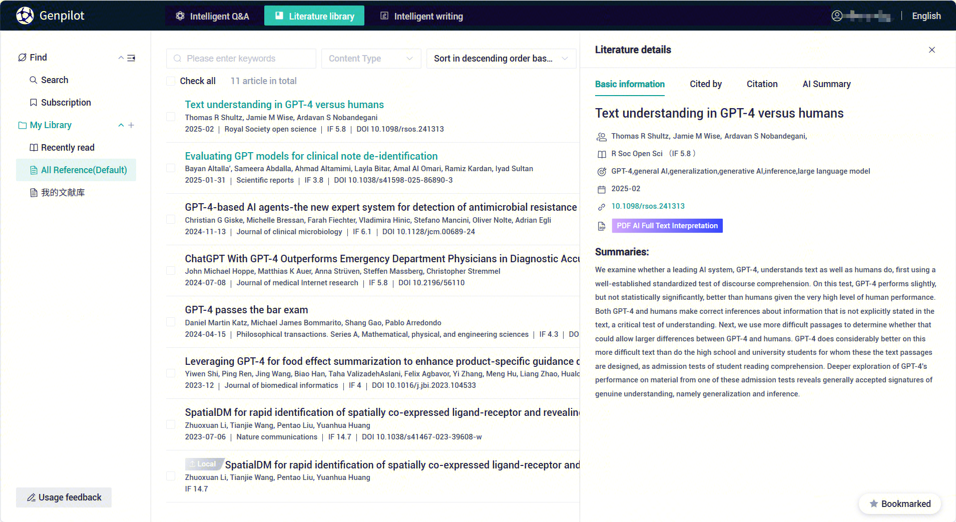 Literature search can retrieve more than 0.1 billion articles from Pubmed and other sources, meeting the needs of different field preferences.