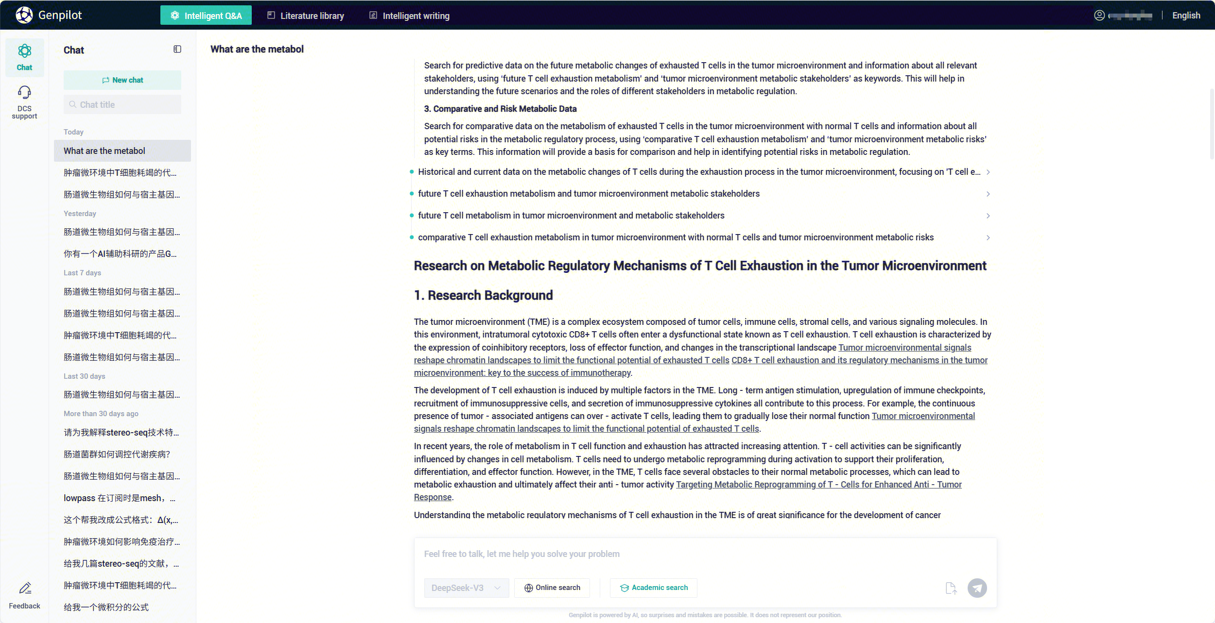 Academic search: Research users can conduct in-depth academic searches. Academic search is based on the latest literature from authoritative databases such as PubMed, using deepsearch deep retrieval technology to extract research background, current status, trends, etc., and output a review framework.