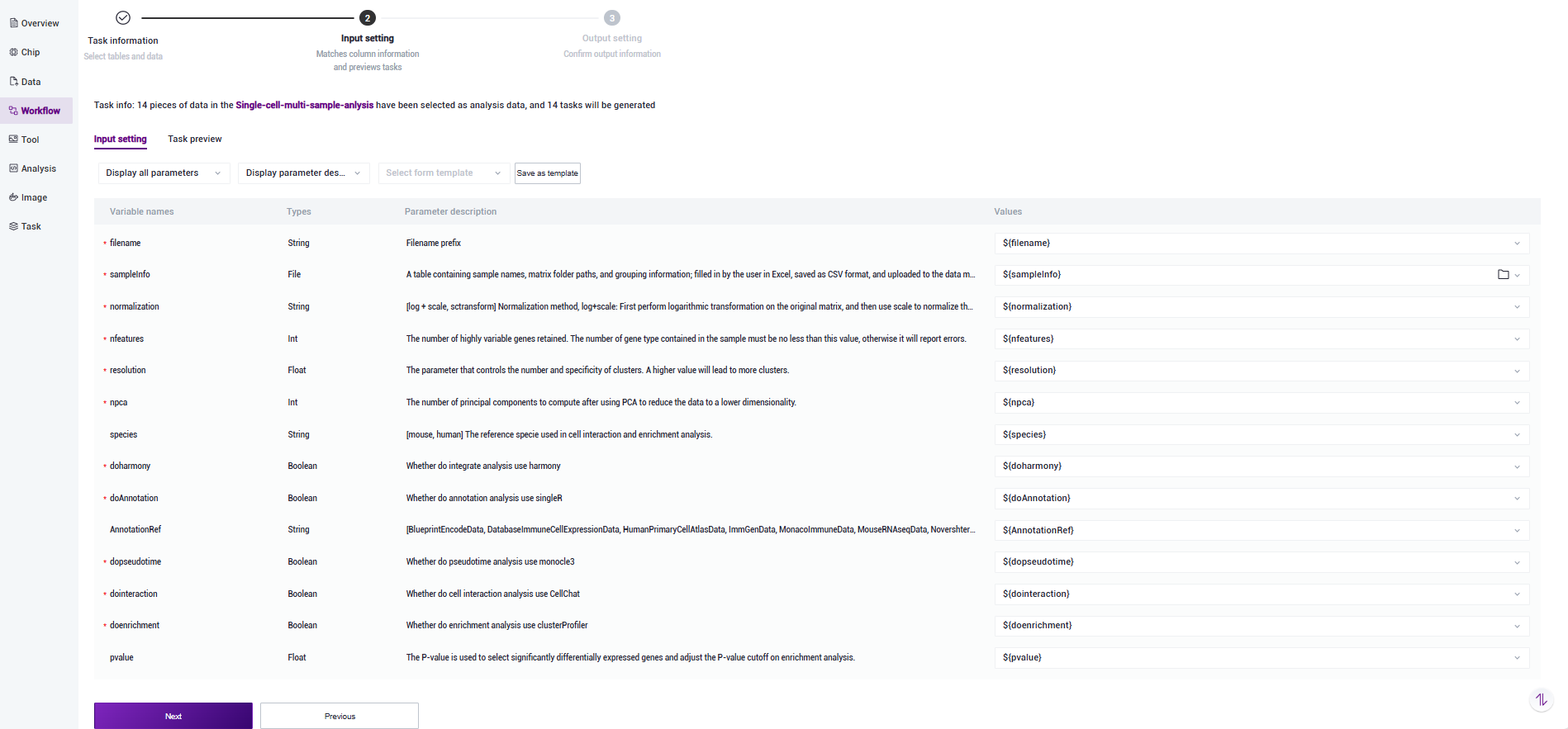 Single-cell-multi-sample-anlysis标准分析流程通过DCS云平台系统进行样本输入及报告输出的全流程管理。下面具体介绍基于DCS云平台系统使用Single-cell-multi-sample-anlysis标准分析流程的操作指南。
