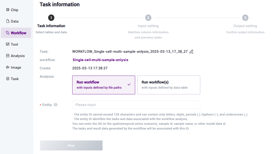 - 选择Run workflow,输入Entity ID,点击【Next】(图3-4):