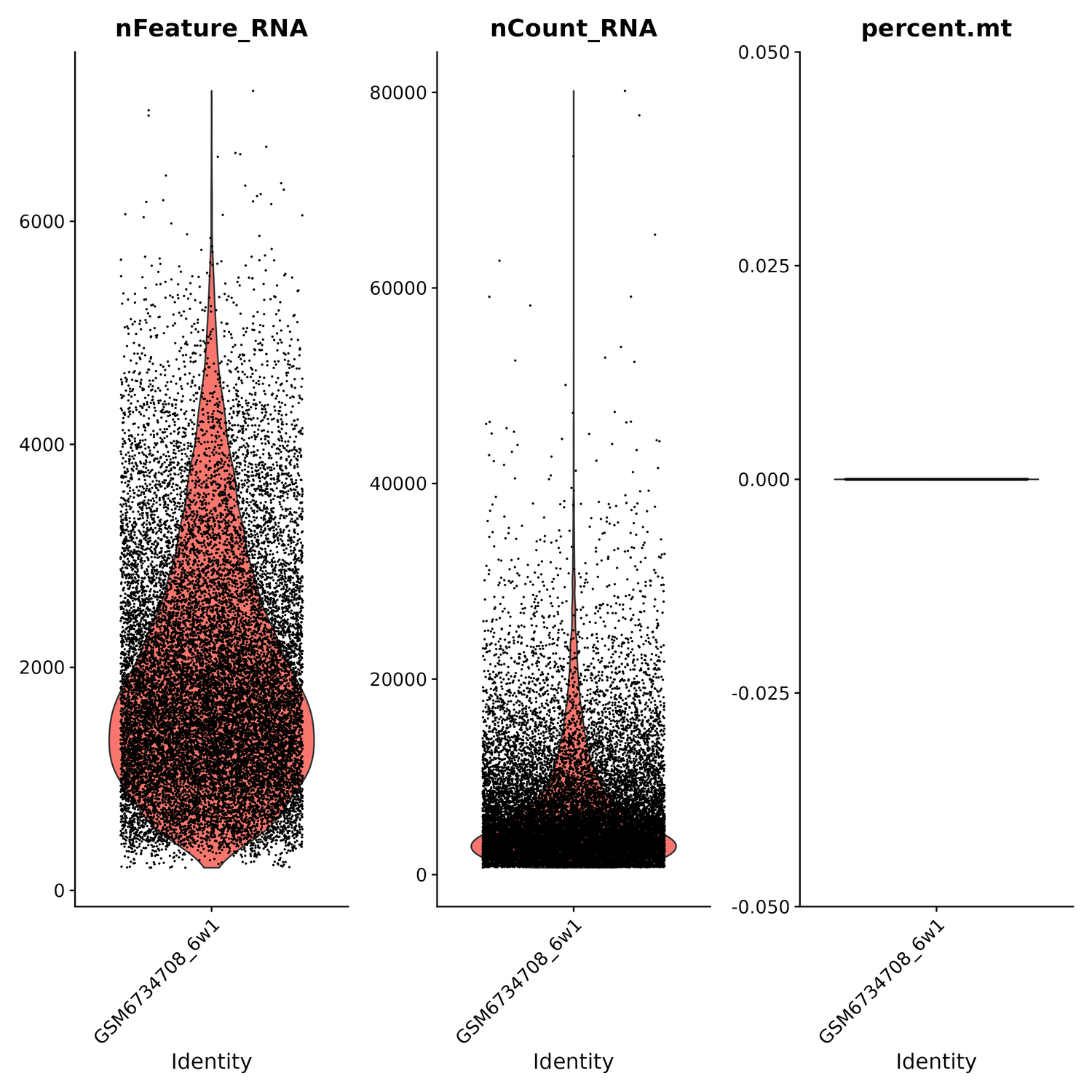 使用Seurat对每个矩阵文件进行严格的质量控制,包括数据过滤、标准化、鉴定高变基因和主成分分析,输出基因分布图、UMI分布和线粒体比例图、高变基因鉴定结果和主成分分析降维图。