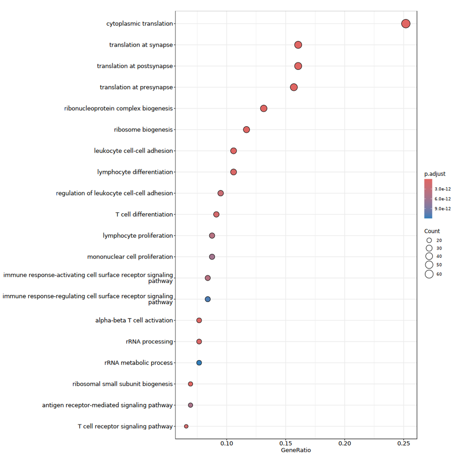 使用clusterProfiler对各个分群(或细胞类型)的标志基因进行KEGG通路分析和GO富集分析。