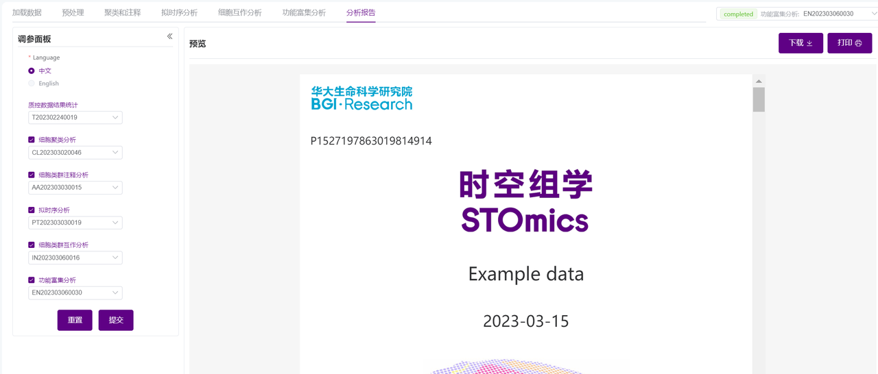 可自选报告模块,对应报告目录下“分析结果” -> “4 数据分析”的各个子模块。默认全选。