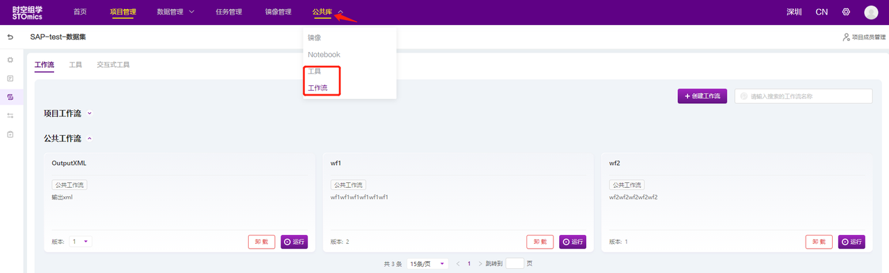 2)公共工作流能运行(当前版本)、卸载工作流(所有版本);