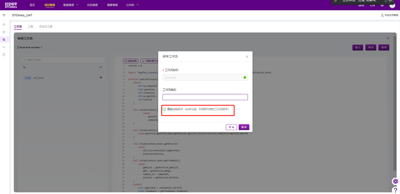 如果是编辑工作流,在保存时还可以选择保存当前版本,也可以保存为新的版本;