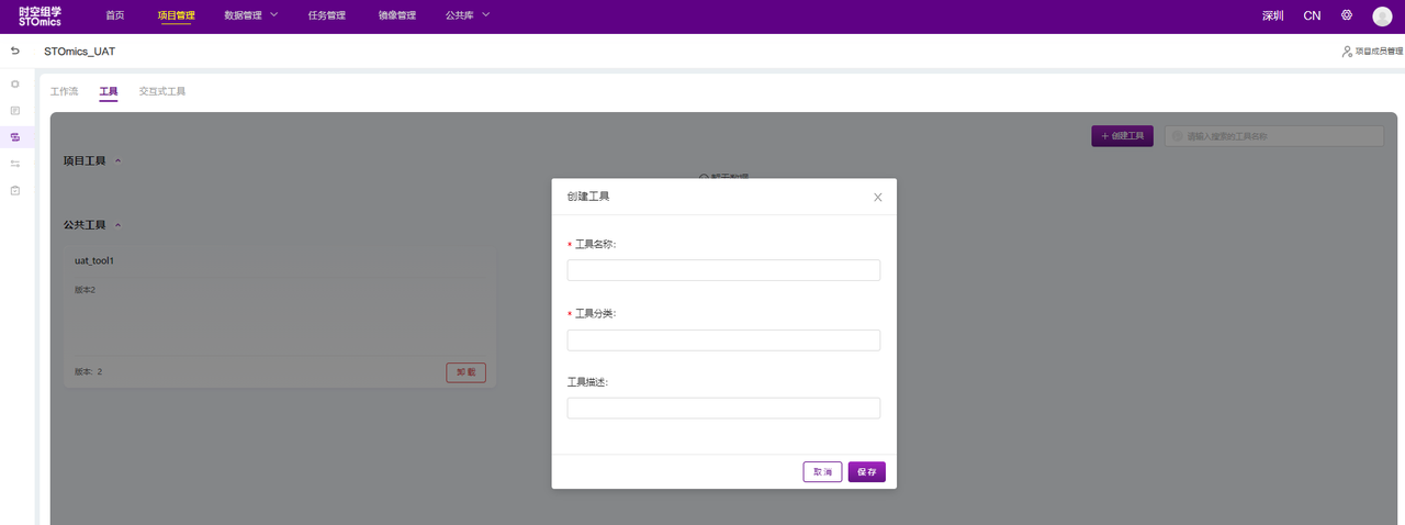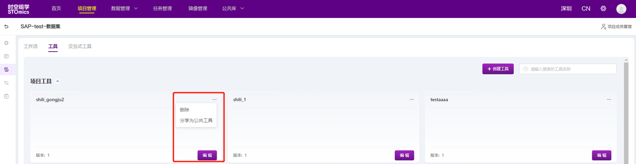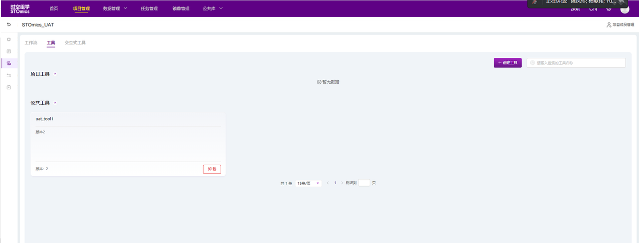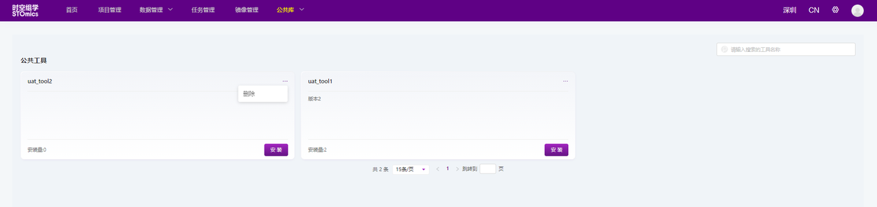 公共库工具操作:平台用户均可以安装进项目使用,有权限的用户可以删除公共库的工具;