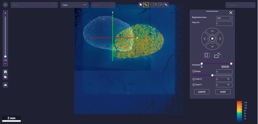 - 手动配准流程 spatial_RNA_visualization_reregister_v3 升级,支持可视化配准新功能,如小角度旋转、沿特征点X/Y方向缩放。