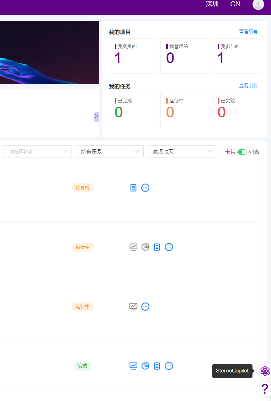 提交运行后,任务出现在【首页】、【项目任务】、【任务管理】、【芯片详情页】对应的任务列表;