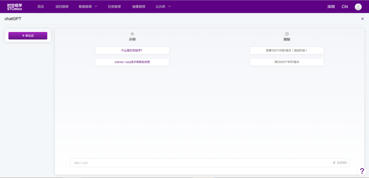 StereoGPT调用Open AI的接口,支持用户进行人工智能问答和提问,方便用户进行代码编写和检查,支持时空组学数据智能分析和运用。
