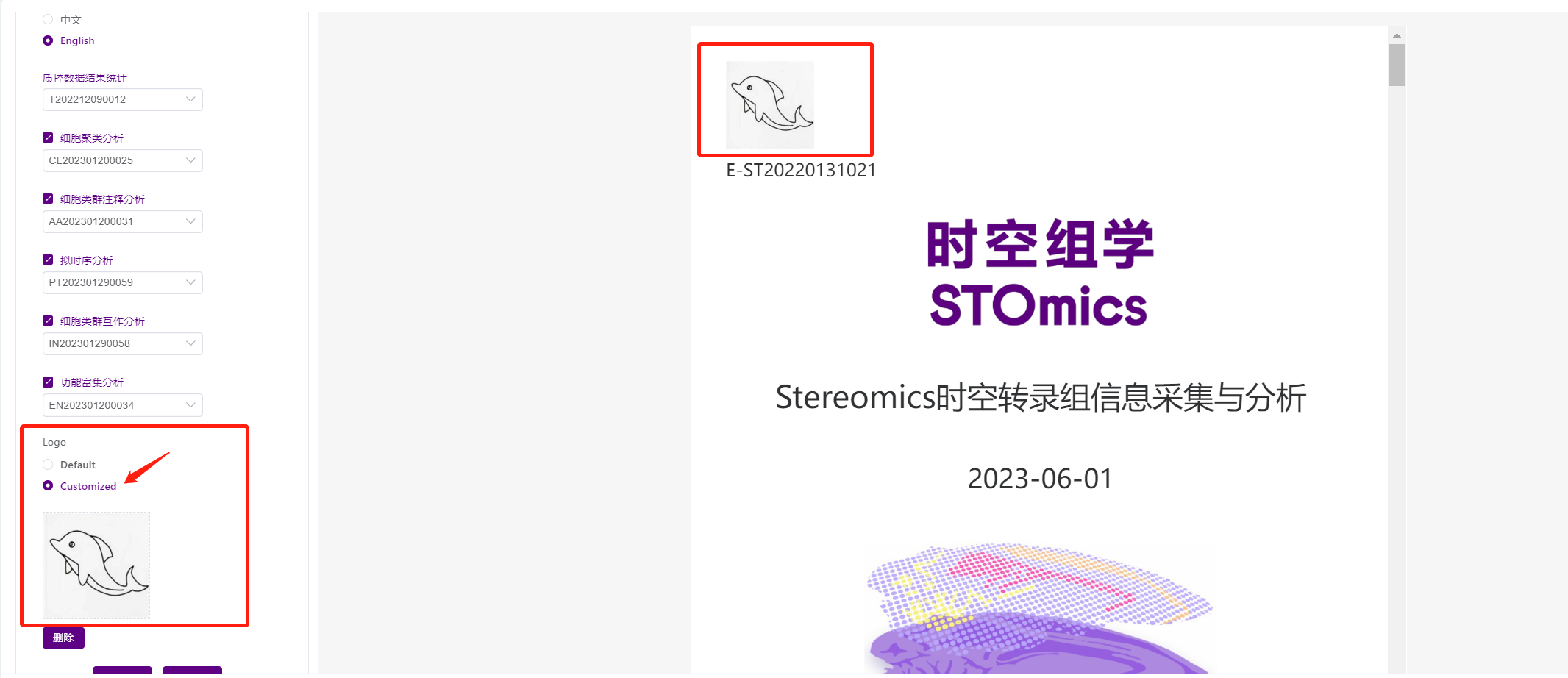 Customized:支持上传其他B端的Logo图标生成报告。系统会自动记忆图片选项,再次生成时使用上一次所用图片,无须重新上传。