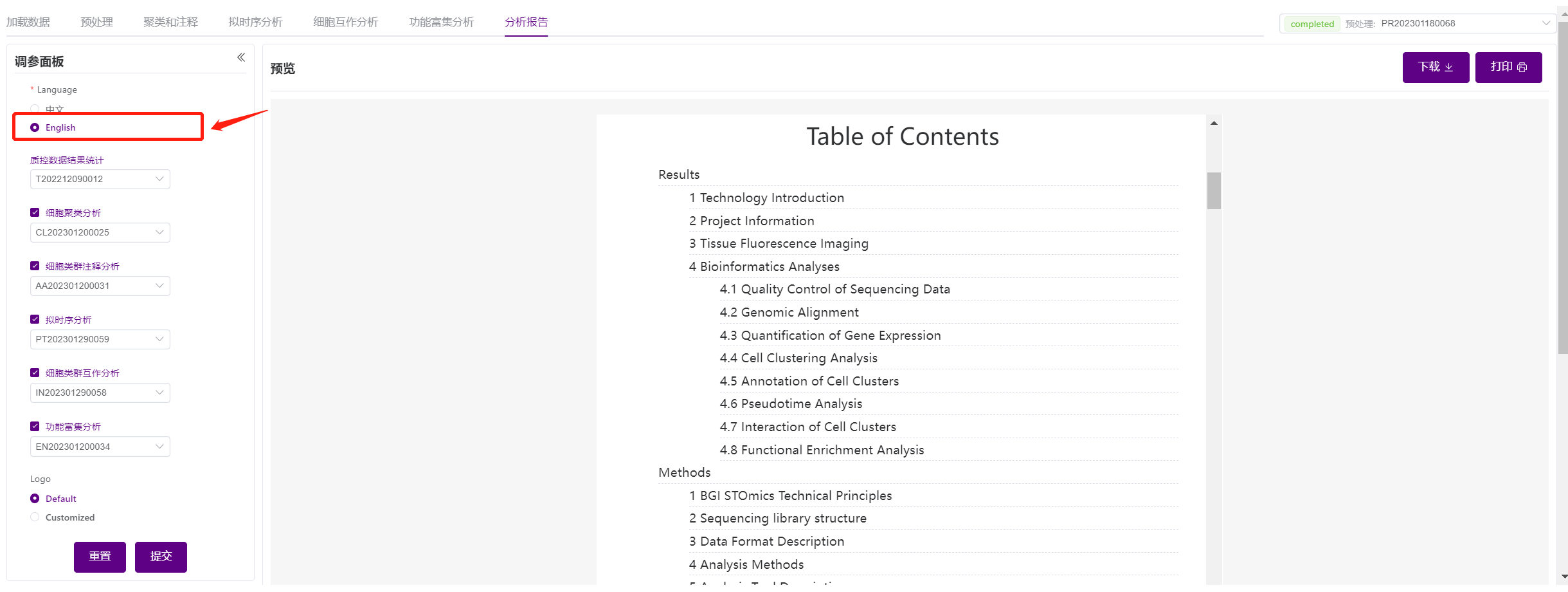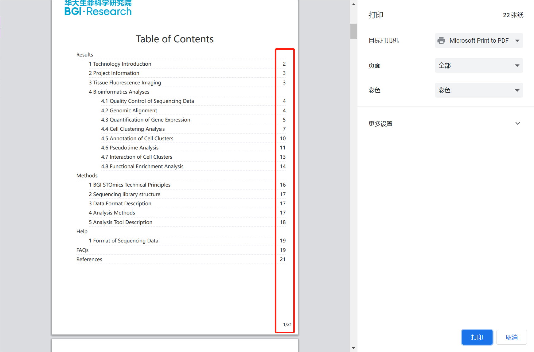 选择打印,会自动对报告进行分页并添加页码。(若下载html版本报告则无页码)