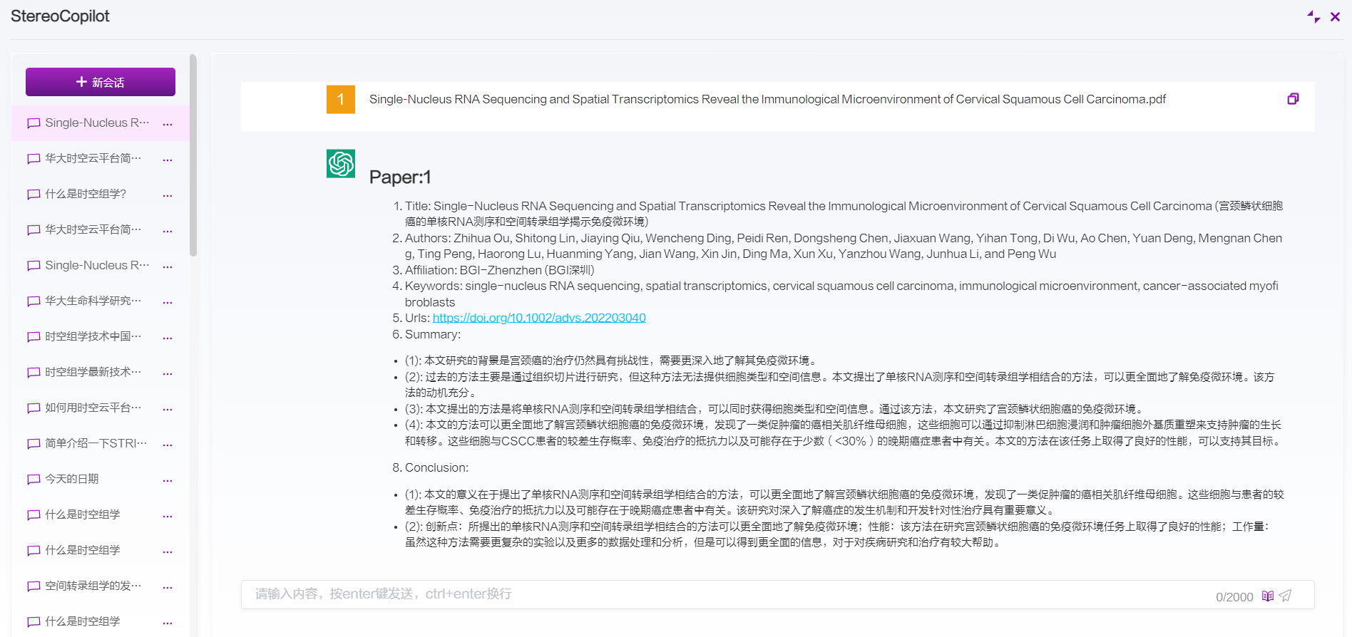 选择文献后自动发送并生成文献总结: