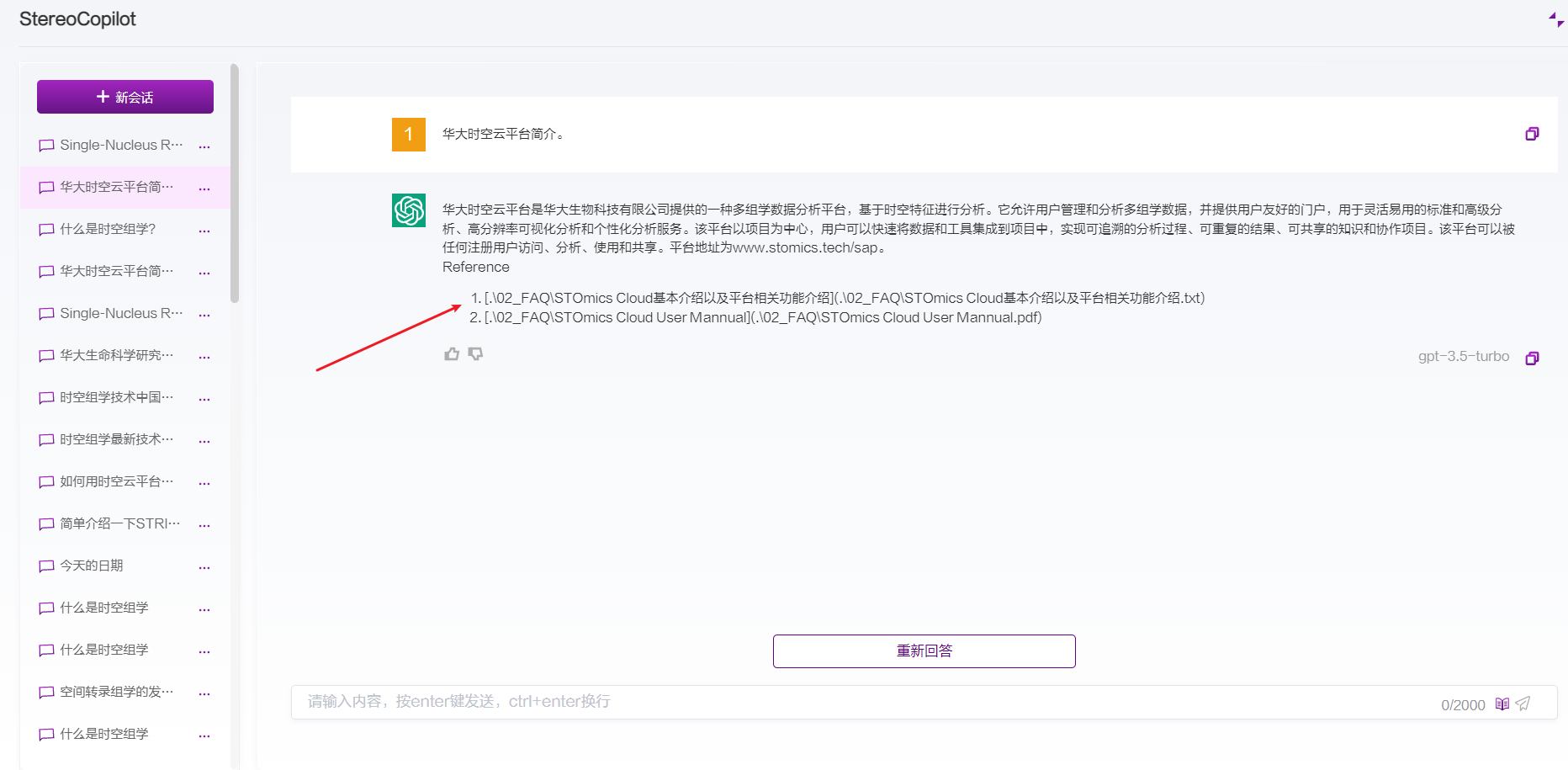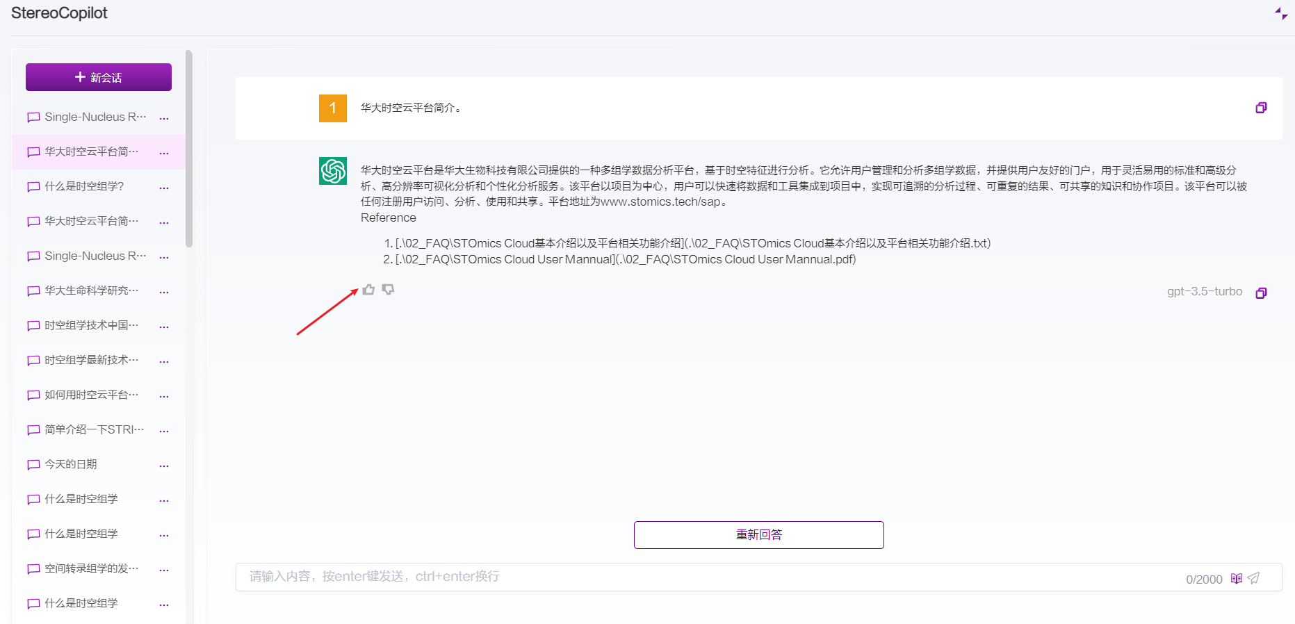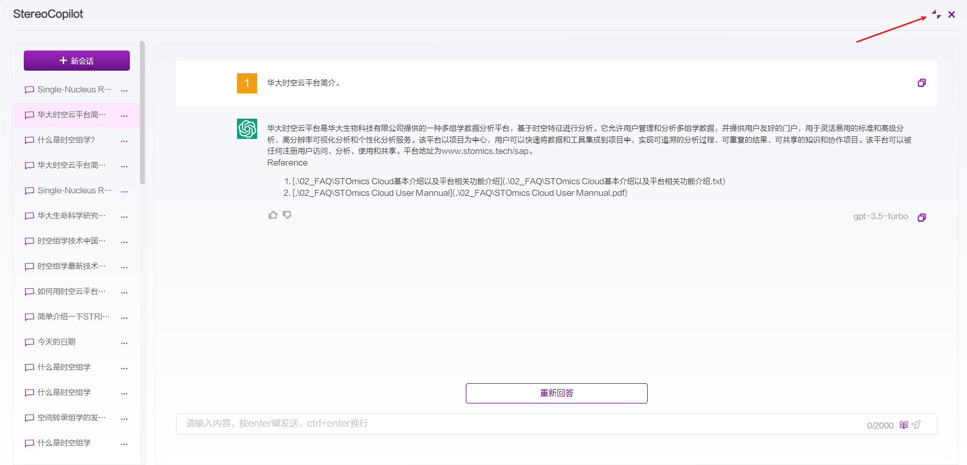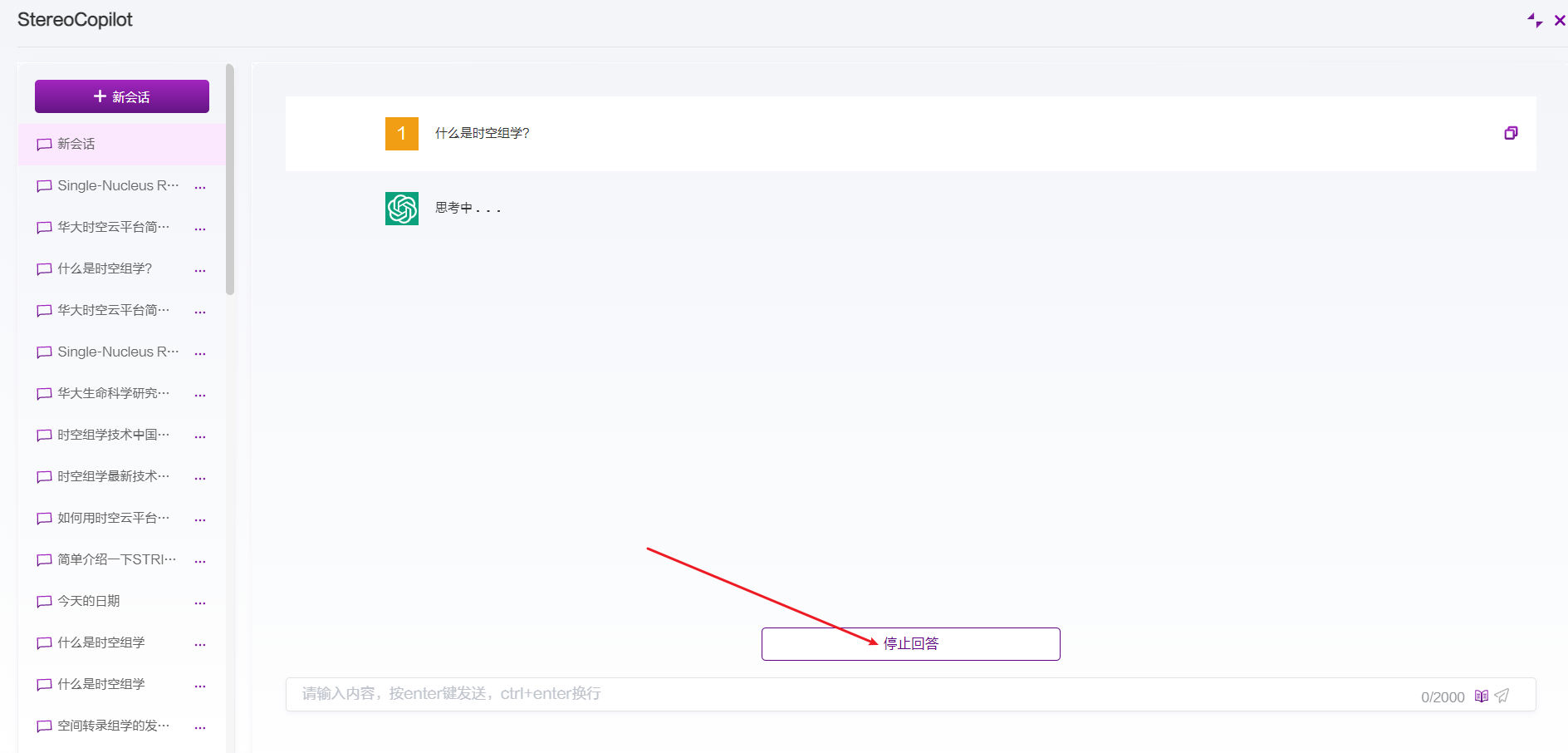 发送问题之后指返回完整的回答之前,可单击停止回答按钮,将停止答案的输出: