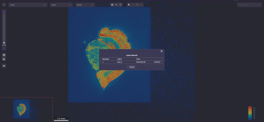 非Cluster图层下,在Image Layer中勾选图像、或在基因/蛋白列表中勾选复选框并以multi-colored形式展示后,图像图例自动显示。