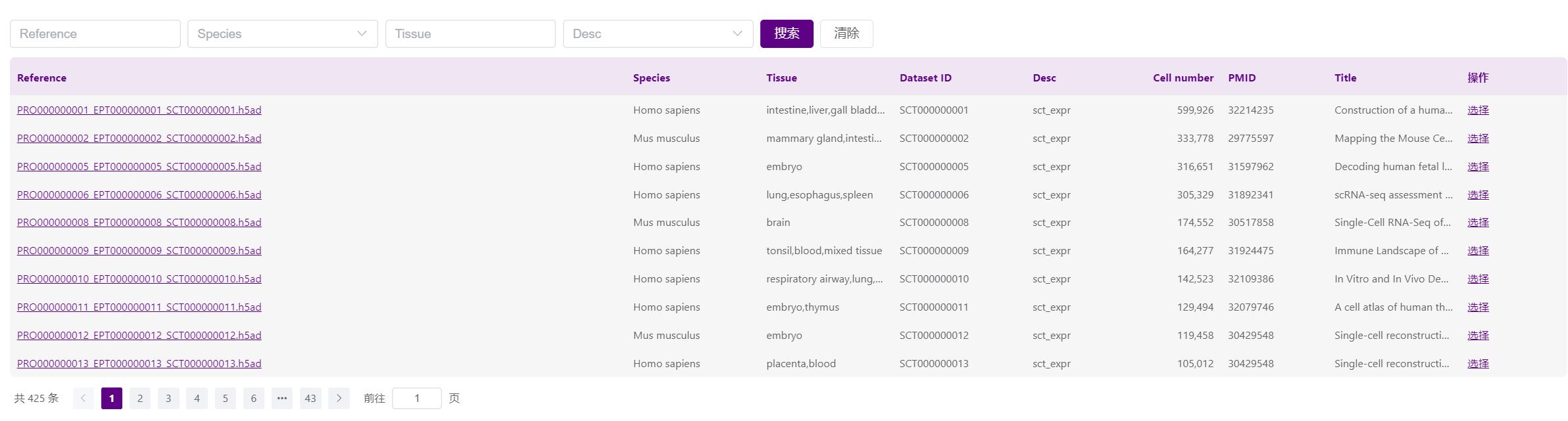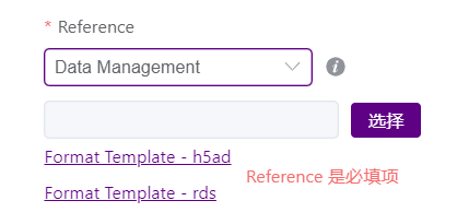③ Data Management:用户可下载数据格式模板,将自定义的reference文件上传至DCS Cloud数据管理模块,从数据管理模块中选取。支持rds和h5ad两种格式。