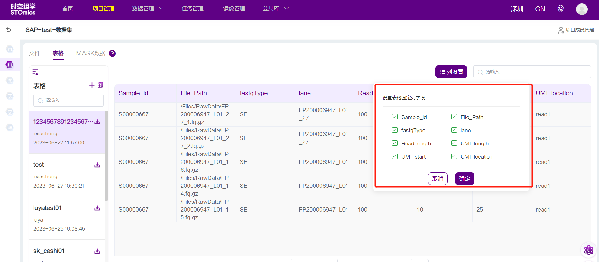 - 直接在取值框手动输入或从数据管理选文件的(仅限单个),也可以单击选择数据,进一步选择所需要投递的子任务, 无需从表格中指定的输入参数需填写完整。