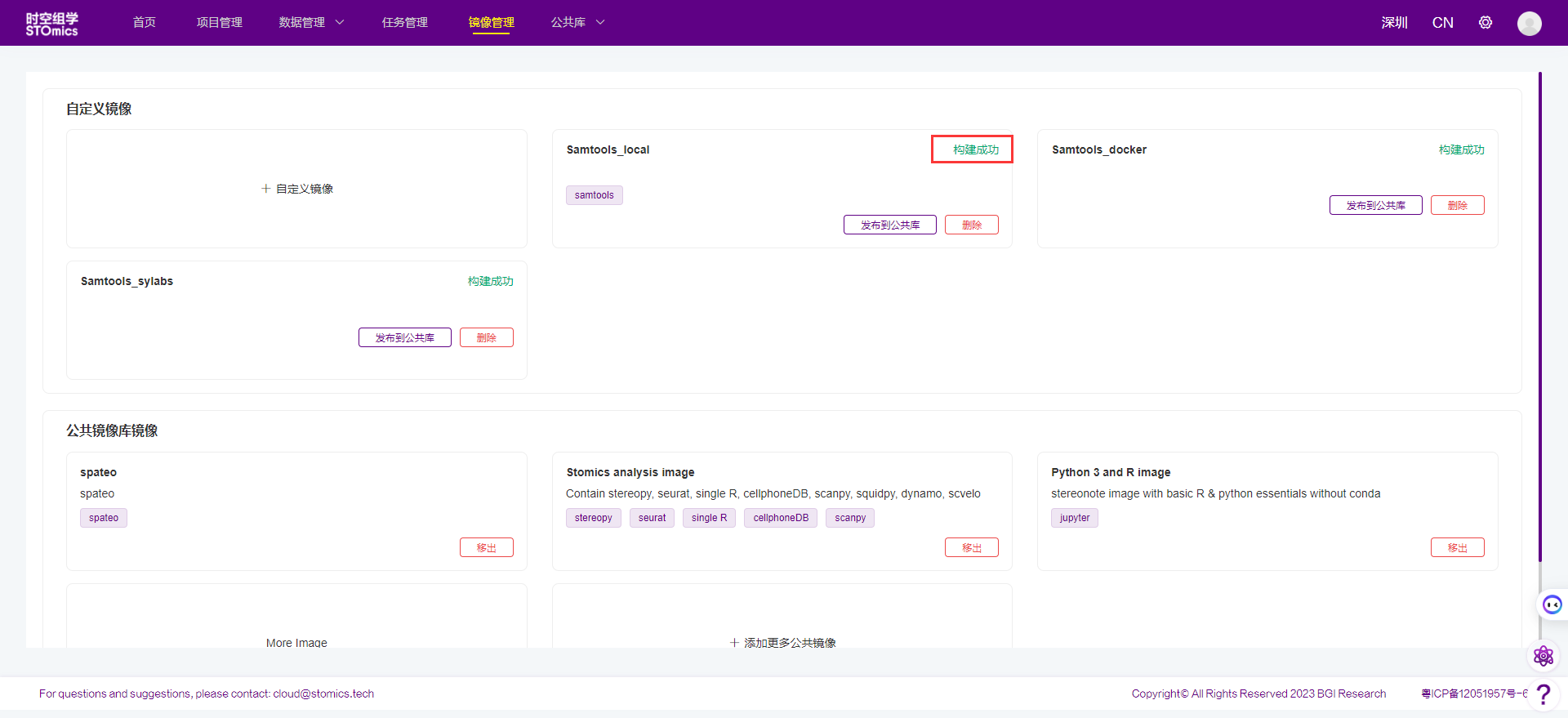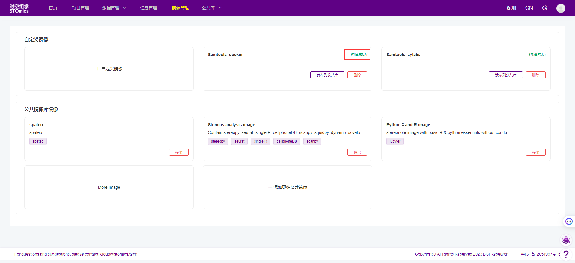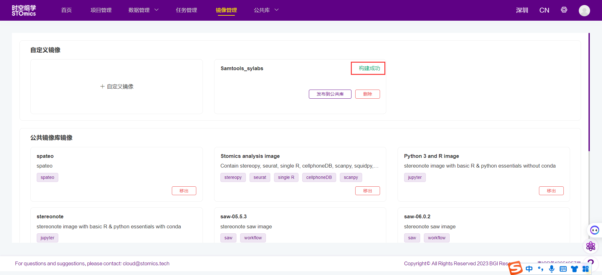 Step4:登录DCS Cloud,在镜像管理构建镜像时选择“外源导入>sif/simg file”方式。输入“http://mirrors1.sz.cngb.org/repository/stomicscloud/+镜像地址直接构建。