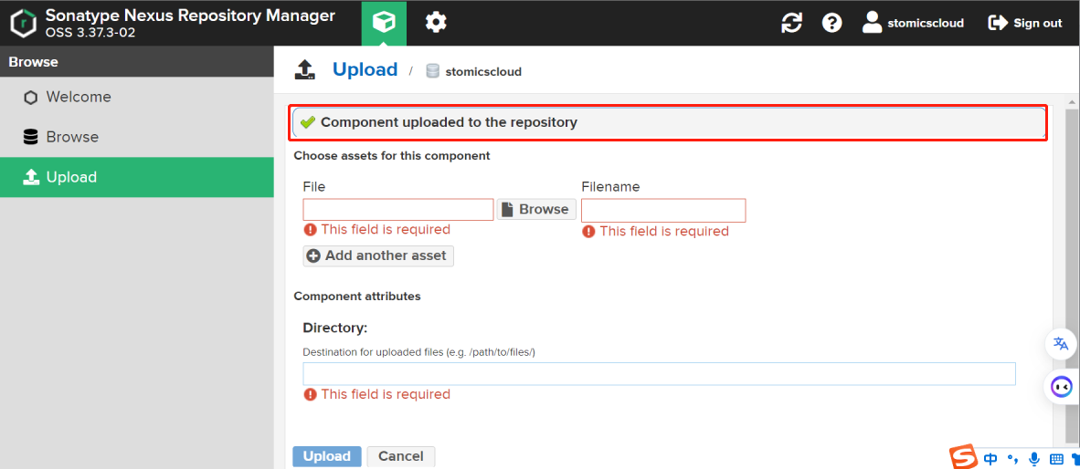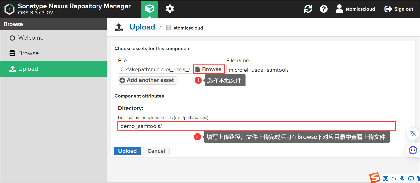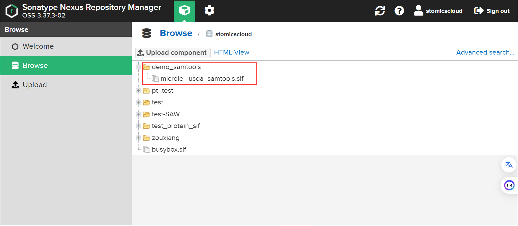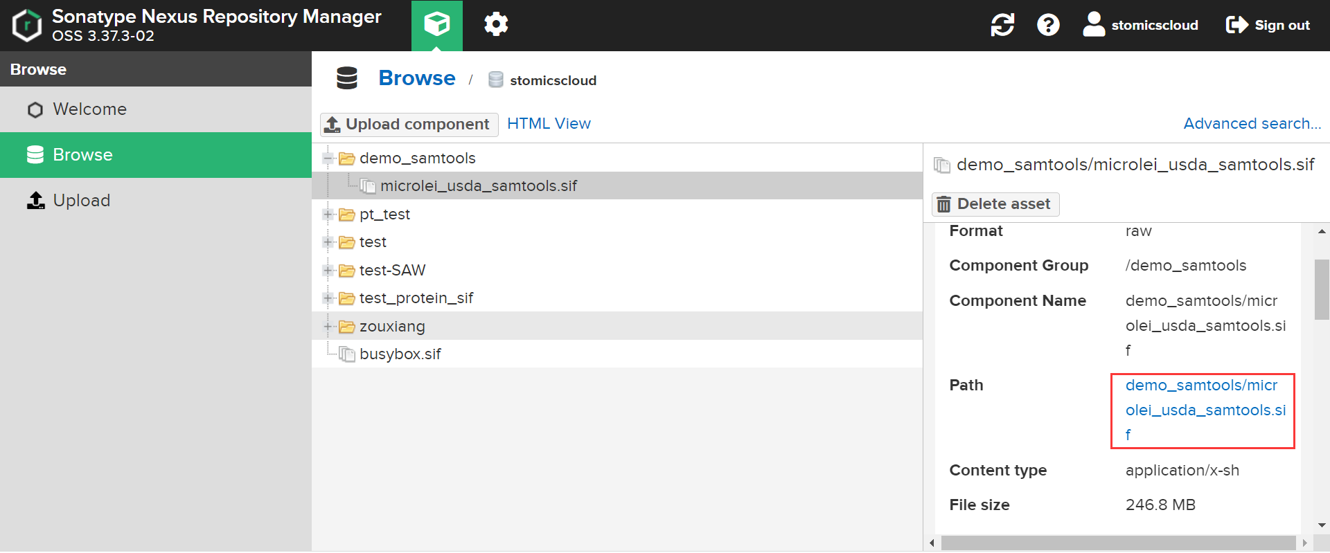 Sonatype Nexus Repository Manager是一个开源的仓库管理器,用于存储、管理和分发软件包和二进制文件。平台搭建的Sonatype Nexus Repository Manager支持上传本地镜像文件(当前仅支持sif和simg格式),上传完成后可获取文件URL,在DCS Cloud镜像管理构建镜像时选择“外源导入>sif/simg file”方式构建时填写文件URL,即可直接构建镜像。具体步骤如下: